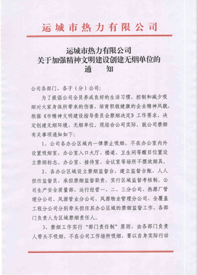 關于加強精神文明建設創建無煙單位的通知